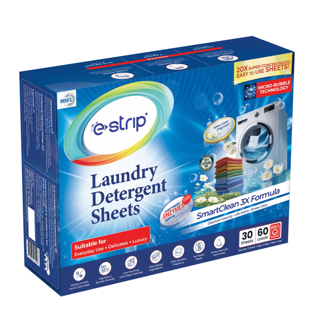 Zero Plastic E-strip replaces heavy jugs with biodegradable power. We blend smart science and eco-friendly care to deliver a deep clean without the plastic waste.